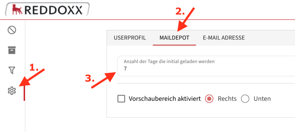 Standardmäßig zeigt Ihr E-Mail-Archiv alle Mails der letzten 7 Tage an. Dies können Sie nach Wunsch anpassen.