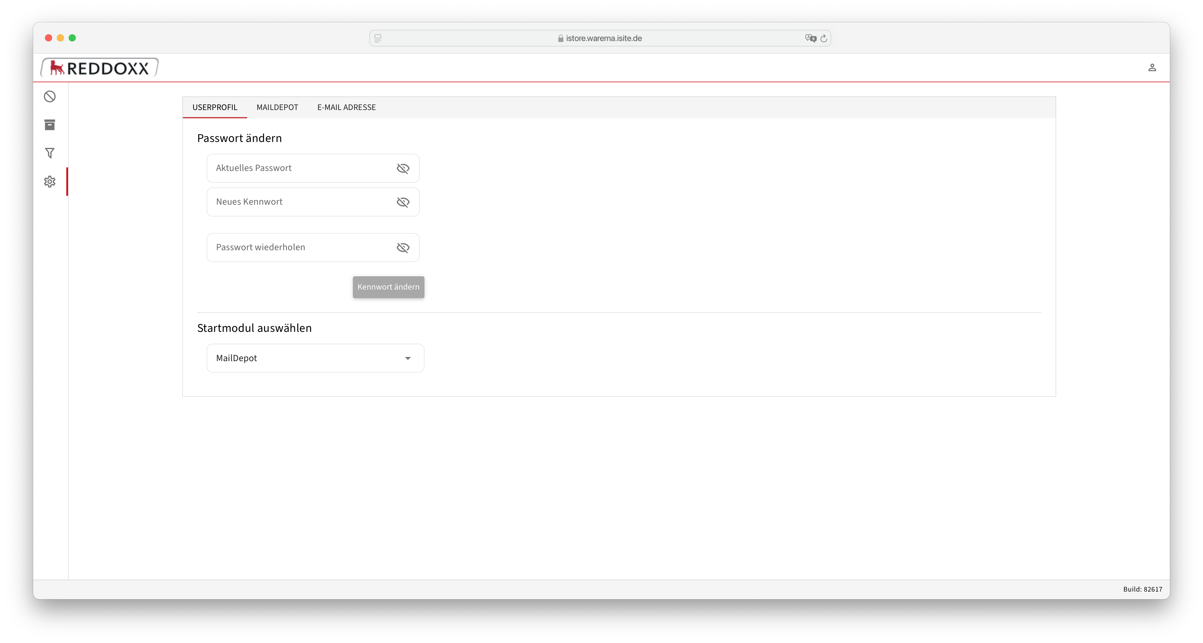 Rufen Sie zunächst die Weboberfläche (https://istore.warema.isite.de) auf und loggen Sie sich ein.