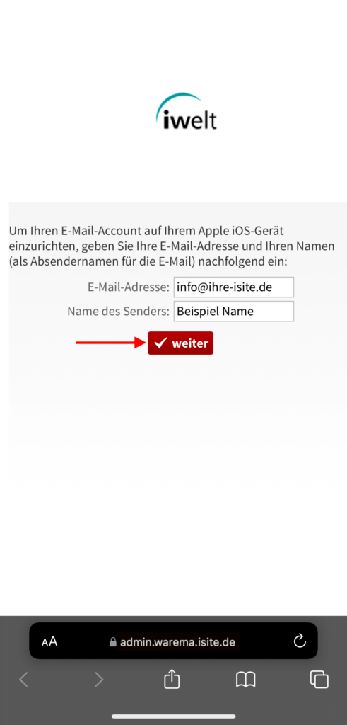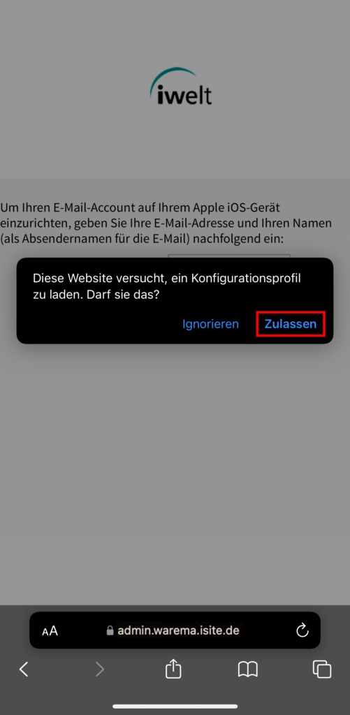 Rufen Sie die folgende URL auf: https://admin.warema.isite.de/liveconfig/hosting/mobileconfig
