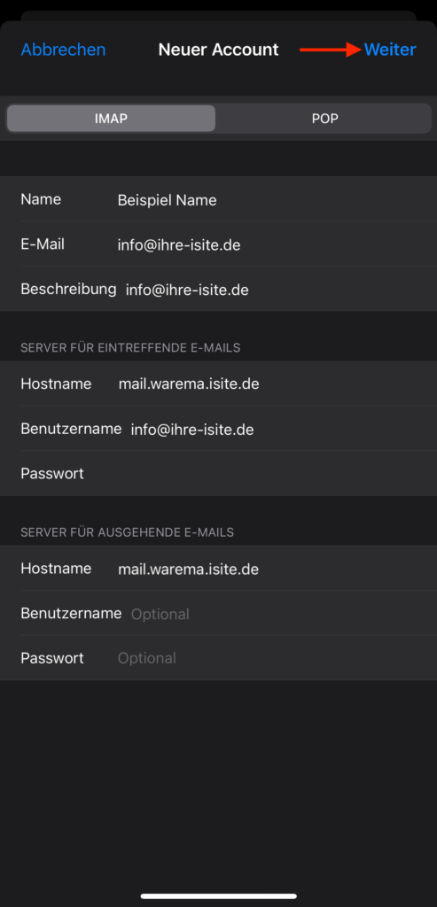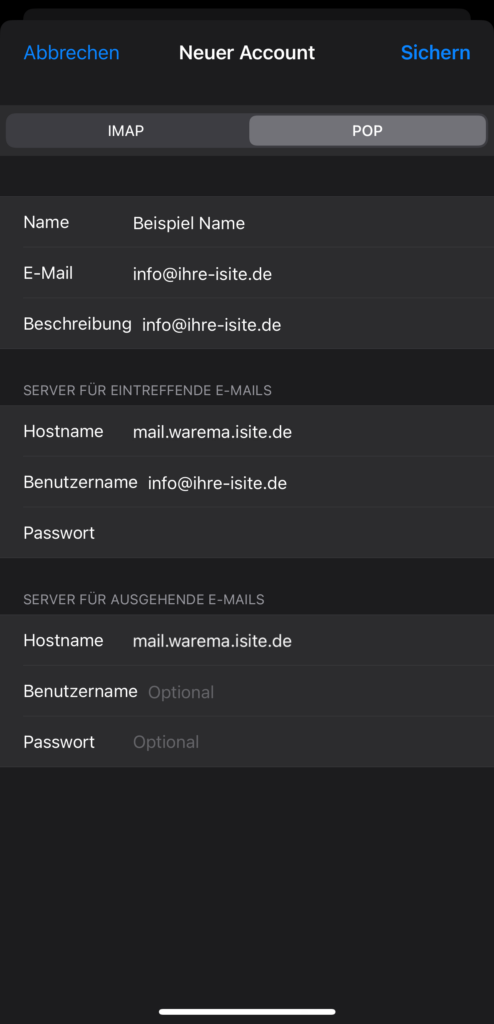 Wie richte ich das Postfach für Apple Mail in iOS ein?