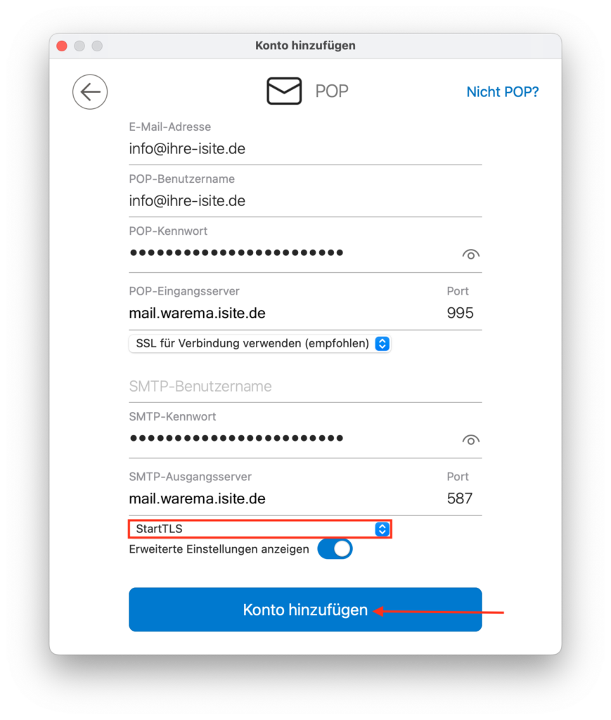 • POP-Benutzername: Ihre E-Mail-Adresse