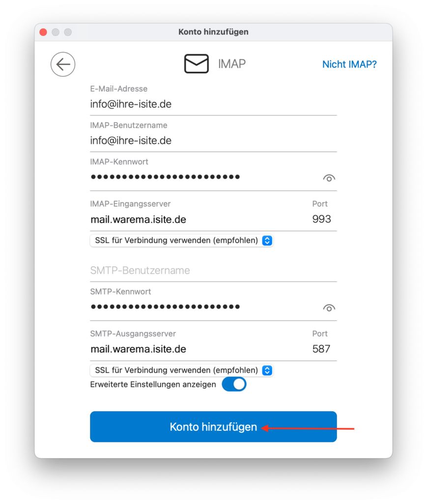 • IMAP-Benutzername: Ihre E-Mail-Adresse