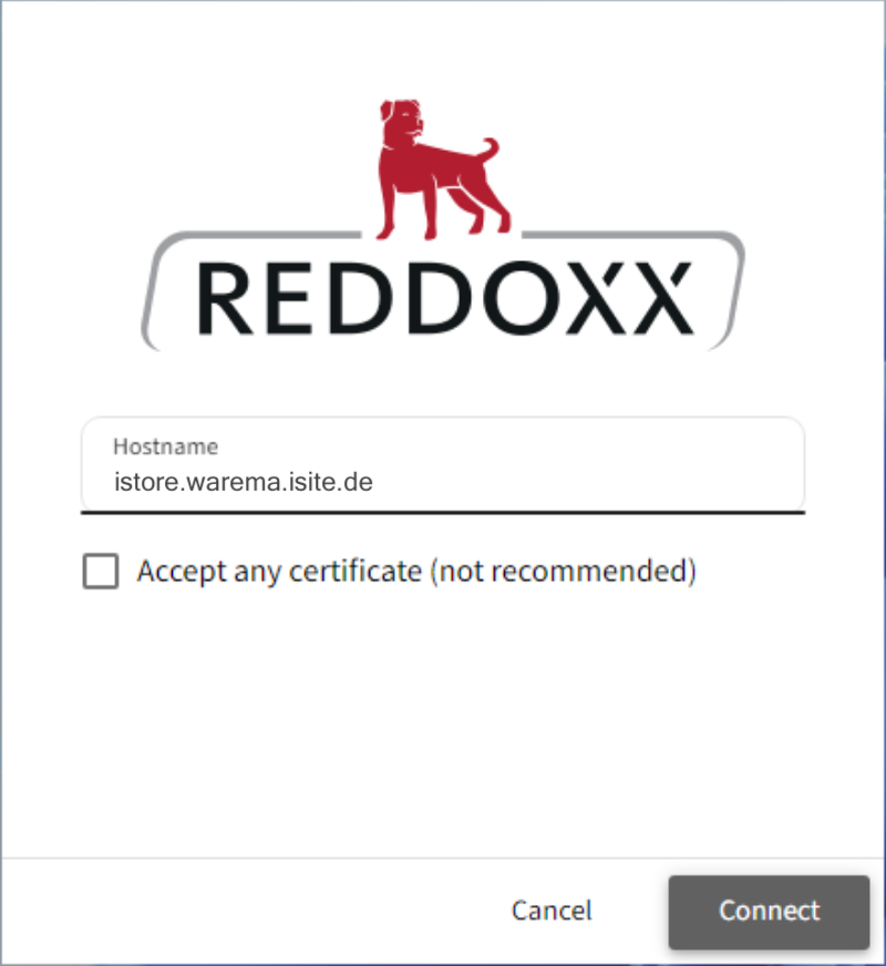 Öffnen Sie die Applikation und tragen Sie unter Hostname istore.warema.isite.de ein. Klicken Sie hiernach auf Connect.